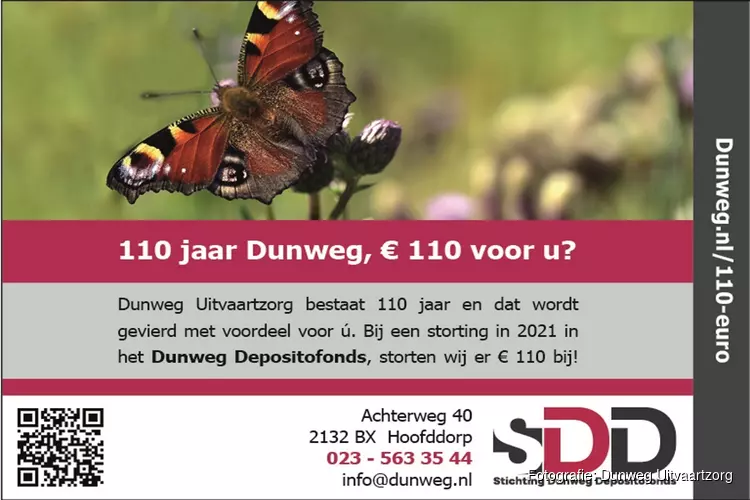 Dunweg bestaat dit jaar 110 jaar en daarom hebben wij voor Stichting Dunweg Depositofonds (SDD) een passend geschenk: €110,- voor u, bij een storting in 2021 in het Depositofonds.