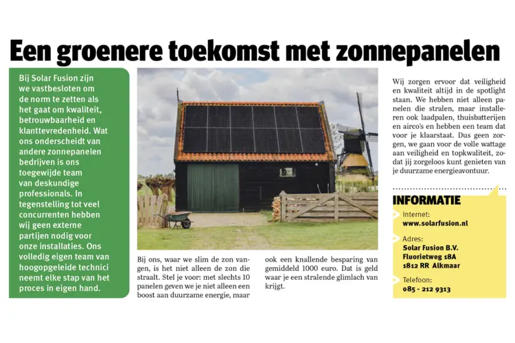 Zoek je deskundig advies op maat voor jouw zonnepanelen? Nou, zoek niet verder, want bij Solar Fusion snappen we dat jouw situatie net zo uniek is als de playlist op je telefoon. Onze experts staan te popelen om je te helpen het perfecte zonne-energiesysteem te kiezen dat niet alleen bij je behoeften past, maar ook je portemonnee blij maakt. Met jarenlange ervaring en een encyclopedische kennis van de nieuwste technologieën, zorgen wij ervoor dat je zonne-energie-investering niet alleen straalt, maar ook flink rendement oplevert. Kortom, we helpen je niet alleen de zon binnen te halen, maar ook een glimlach op je gezicht!